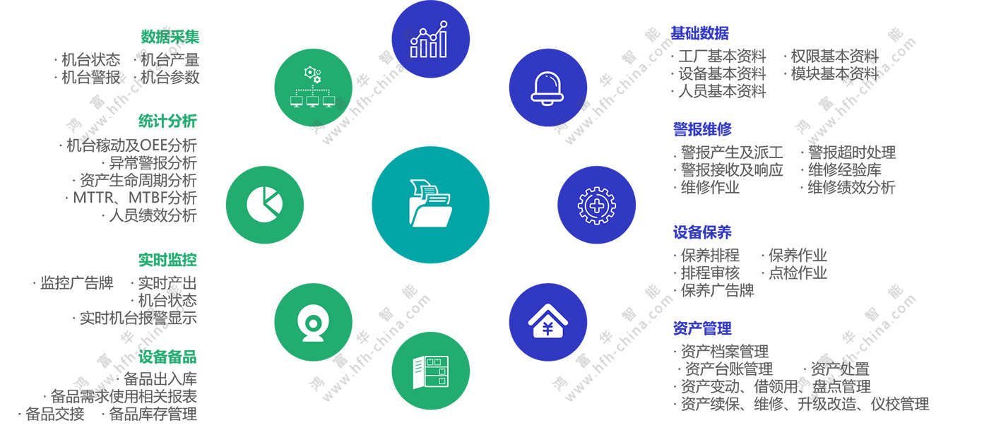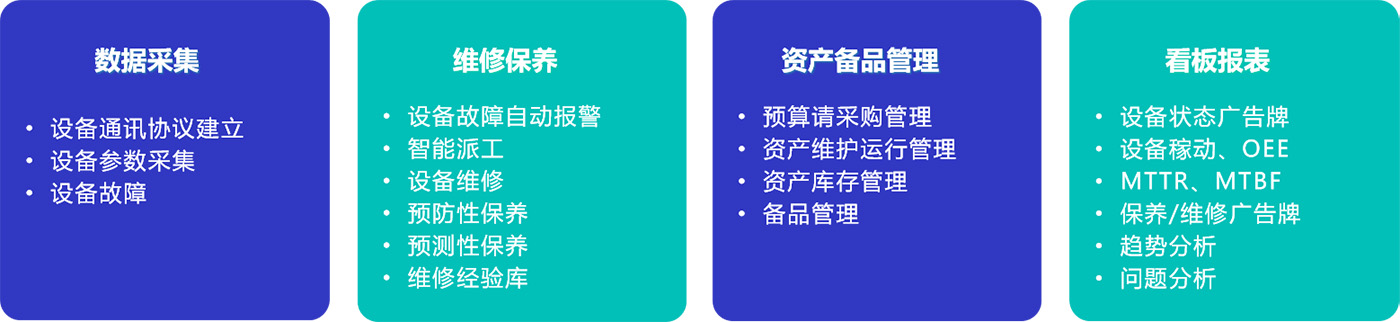 我們的系統主要從設備的即時數據采集,設備維修預防保養,資產備品管理,看板報表等方面對設備進行管控,它結合了數據總線,B/S微服務架構及移動技術,實時數據采集/監控,自動消息推送及現場移動點檢/維修